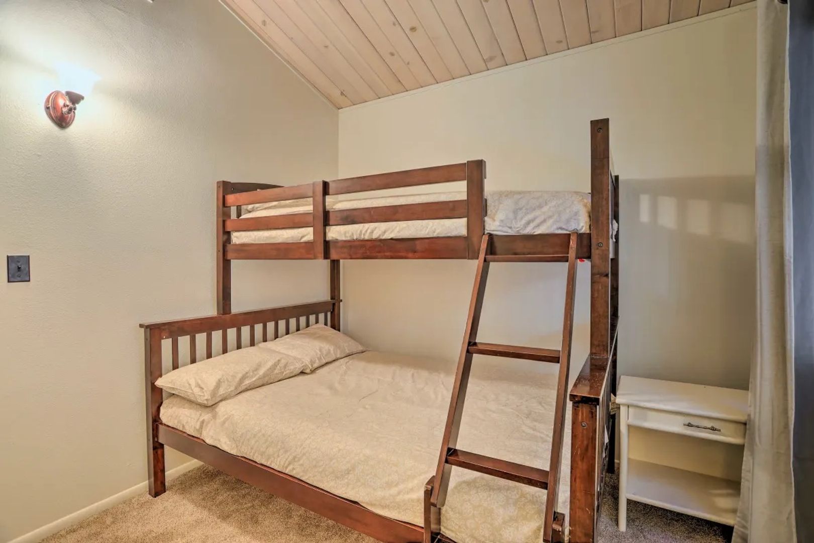 Attractive Two Bedroom and Two Bath Chalet in one of the desirable areas in Lake Arrowhead Villas. Recently upgraded! Easy entry that opens into the living with Fireplace. Open Concept Living, Dining and Kitchen. Beautiful Decking and views of Trees. Two Bedrooms upstairs on main Level with Bath and Extra Bonus Room downstairs with Bath. Bonus Room could be another Bedroom, Family Room or even a Game Room. Laundry Room downstairs. Two car Carport for parking. Property was a successful Vacation Rental and comes fully Furnished. Must see this one!